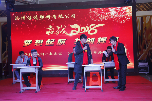 冬去春回又一載,似水流年旺年來。2018年2月12日下午,滄州潔通塑料有限公司2017年年會(huì)在正達(dá)大西洋酒店隆重舉行。潔通公司全體員工歡聚一堂,在熱情、溫馨、歡樂的氣氛中回首2017年取得的成績,共同迎接2018年的到來。